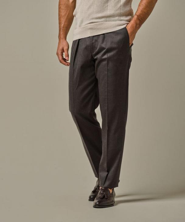 Deze wol in de relaxed fit is zowel geschikt voor een meer formele of meer smart casual look. Gemaakt van een Europese wol-stretch. Elastiek in de tailleband en toegevoegde stretch voor extra comfort. De relaxed fit geeft iets meer ruimte op bovenbeen en knie.