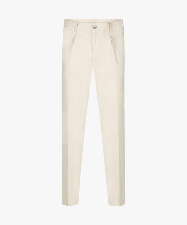 Deze relaxed fit broek is gemaakt van een Italiaans lyocell-katoen stof met een crispy touch. Elastiek in de tailleband en toegevoegde stretch voor extra comfort. De relaxed fit geeft iets meer ruimte op bovenbeen en knie.