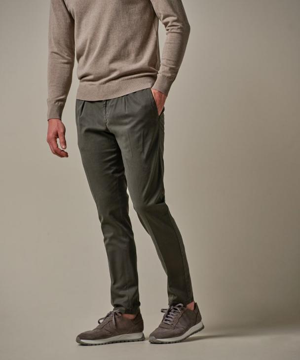 Deze groene sportcord broek is de meest comfortabele broek in de collectie. Gemaakt van een zachte Italiaanse lyocell-katoen, elastiek in de tailleband en toegevoegde stretch voor extra comfort. Het koord kan zowel in als uit de broek gedragen worden.